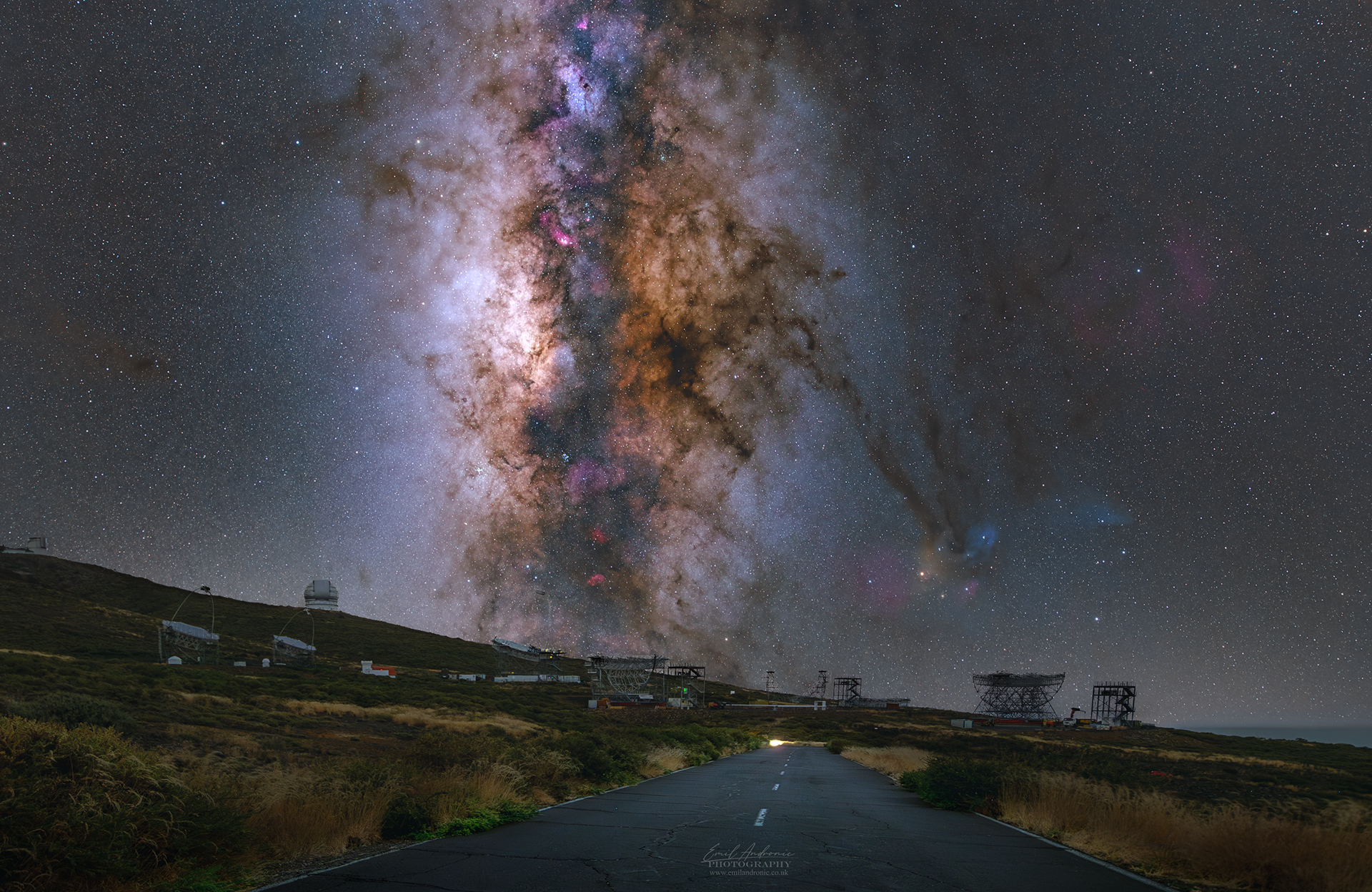 For the Milky-Way photos, the sky was excelent. So far, I have never seen southern hemisphere nebulas in any Milky-Way photos shot from the UK but with the sky being so clean and clear, I managed to capture the Cat's Paw and Lobster nebulae, just one degree above the horizon, seen in the photo as the 2 red patches at the bottom of the Milky-Way.
